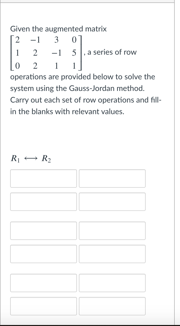 Solved Given The Augmented Matrix Perform Each Row Operation Chegg Com